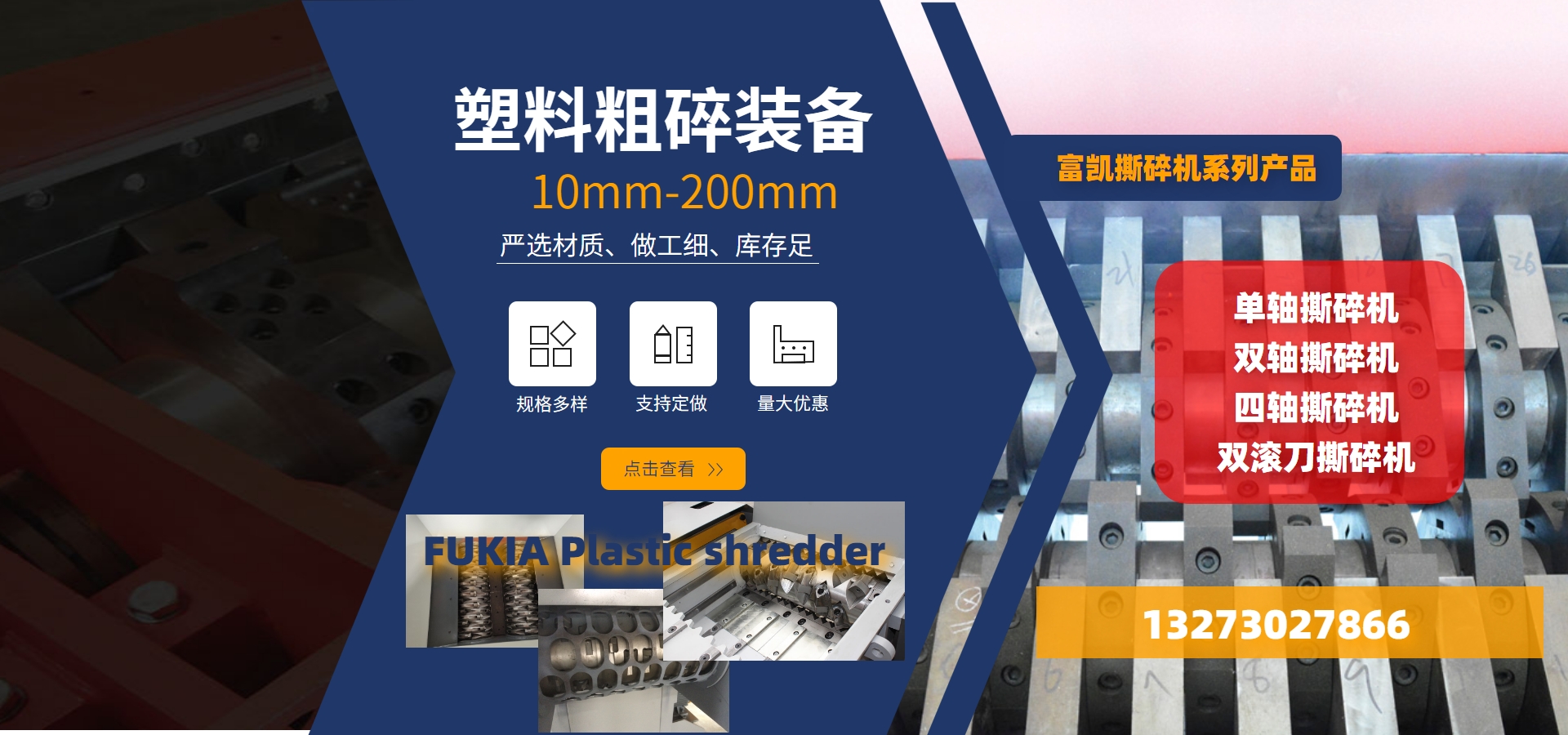 河南富凱機(jī)械是以粉碎機(jī)系列設(shè)備的生產(chǎn)研發(fā)為主的現(xiàn)代化企業(yè),本公司技術(shù)力量雄厚,設(shè)備配套齊擁有完整的產(chǎn)品設(shè)計(jì)、生產(chǎn)、加工、裝配及檢測(cè)體系保障,塑料再生破碎系列產(chǎn)品主要有:塑料粉碎機(jī)、單軸是撕碎機(jī)、雙軸撕碎機(jī)、四軸撕碎機(jī)并可根據(jù)生產(chǎn)需要配置相關(guān)清洗、干燥生產(chǎn)線(xiàn)實(shí)現(xiàn)多種包裝廢棄物、舊塑料的再生加工。為便于服務(wù)客戶(hù)富凱機(jī)械誠(chéng)招地域合作伙伴及代理商、經(jīng)銷(xiāo)商。